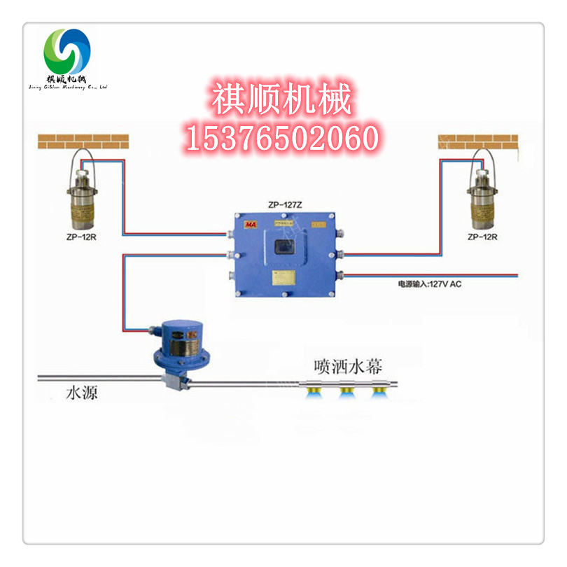核心提示:ZP127红外感应自动洒水装置 煤矿洒水喷雾成套ZP127矿用全自动洒水降尘装置王经理 联系热线:153-7650-2060济宁祺顺机械有限公司